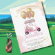 Charming Rosa Golf Cart First Birthday Girl Inbjudningar