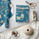 Den här charmerande inslagningen papper för en barn födelsedag är perfekt för antingen en pojke eller en flicka. Den blå bakgrunden kompletterar en rustik boho mönster med luftballonger, en söt räv på en cykel, vattenfärg träd och grönt, flytande botaniska accenter. Denna könsneutrala presentfigursättning är perfekt för en födelsedag, Påsk, Heliga Communion, Bekräftelse eller en annan speciell händelse.