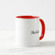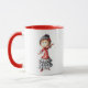 Att charma keramisk mugg med en illustration av en mörk med en tjej som dansar med sin fantastiska, ljusröda med vit prick sevillana-klänning från polka. Hennes hår är bundet i en toppknut med en karminblomma. Anpassa mugg med ditt eget namn eller med ett budskap till den älskade du ger det till. Illustrerad och designad av Patricia Alvarez.