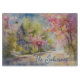 En viskös vattenfärg av ett träd-beklädt ge i skärbrädet ett Vår-estetiskt. Skärbborden är lätta att byta ut när säsongerna förändras, ge dig ett roligt för att ändra din hemdekoration. Namn kan ändras. AI-assisterad grafik som köpts med kommersiell licens. Bild: RavenPrintableDesign