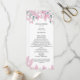 © Socialite Design & LICENSORS. Fin rosa och grönt med bröllopsprogram av blommor med vattenfärg för att vara personlig för din speciella händelse. Detaljerna i bröllop omges av elegant hängande wisterblommor. På framsidan av programmet finns din namn-visning, platsen namn och platsen, ceremonin och ett tackmeddelande. I bakgrunden visas namn i bröllopsfesten. Teckensnittet stil kan ändras. Behöver du hjälp med att anpassa eller utöka produkter med den här designen? Tveka inte att kontakta Socialite Designs.