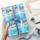 Den här Charolais-tjuren visas över en snöblå bakgrund.