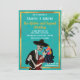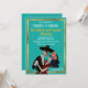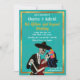 Fira Día de los Muertos med en fyllning i bröllop med fantastisk med mat, dryck och musik med roligt, toppen, söt och hederlig döskallar av vintage Charro och Catrina-socker som dansar efter denna livstid och därefter. Texturerad tealbakgrund, dekorerad med finare guld ram.