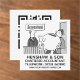 Främjande av Affärskort för ett auktoriserat revisorsföretag. Lustigt illustration visar en klient med en stor spargris. Innehåller QR-kod. Det finns olika webbplatser där du kan skapa och ladda ned QR-koder gratis. QR-koder kan skapas för webbplatser, e-post, WiFi, kort och många andra användor. Ett exempel är https://www.qr-code-generator.com