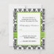 Detta svart-vita damaskré RSVP-kort med ett limegrönt band och en juvelprydd broche matchar bröllopsinbjudan nedan. Om du behöver andra matchande artiklar eller vill ha det i en annan färgkombination, vänligen maila niteowlstudio@gmail.com med din förfrågan.