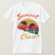T-shirt har frasen "Sunset Chaser" i ett unikt, övertonat färg-schema. Färg skulle kunna övergå från orange och djup rött till mjuka nyp och lila, och imitera de pulserande nyanserna från en riktig solnedgång. Denna utformning är perfekt för alla som kärlek som jagar skönheten hos sol och äventyr som man lovar.