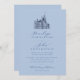 Chateau Illustration Script Fransk Blue Bröllop Inbjudningar