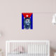 En digital illustration av en leende Che Guevara med kubansk flagga.