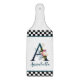 Vackert skärbord/karosserikort med finare-blommigtar och stort brev/inledande A med svart och vitt kontrollbord gräns. Anpassa med förnamn eller efternamn