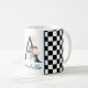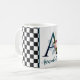 Vackert kaffe mugg med finare-blommigtar och stort brev/ursprungligt A med svart och vitt schackbräde gräns. Anpassa med förnamn eller efternamn