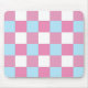 Cool, blue, pink white, and pink checkerboard pattern.