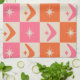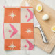 Checkered Mid Century Boomerangs pink and orange Kökshandduk