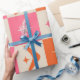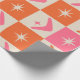 Add atomic era vibes to your gift wrap with this wrapping paper sheets featuring checkered mid century boomerangs pattern with atomic starbursts in pink and orange. It's elegant gift wrap for retro themed parties and celebrations for mid mod fans