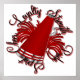 Röd- och silver-pumpar och megafon omges av ord "Cheer Loyalty Strength Pride Spirit"