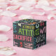 Många många-färgad klamrar och ord är utspridda på kritan för att visa er laganda och kärlek för glädje.