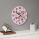 Beautiful lavender wall clock for dog lovers. This fun home accent is decorated with various whimsical cartoon illustrations of dogs. The design includes big bold numerals for each hour. Great housewarming gift for a dog loving family or a dog owner.