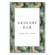 This wedding tabletop sign features a sophisticated design with a central white rectangle bordered by an intricate, swirling marble-like pattern in shades of green and beige. The layout is clean and modern, with the text "DESSERT BAR" and "PLEASE TAKE A TREAT!" prominently displayed in elegant serif fonts that add a touch of charm. The earthy color palette and abstract fluid patterns create a welcoming and cheerful atmosphere, perfect for inviting guests to indulge in sweet treats at your event.