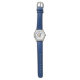 En blå klocka med illustrationen av en hedgehog-för barn som lär sig läsa tiden på en analog klocka. © ArianeC Illustrations