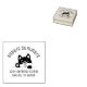Enkel tecknad illustrerar en glad hund, tunga ut, som söker bakifrån. Endast dess huvud och främre tass syns. Ett tass upphöjs i en våggest. Anpassa med din egen adress.