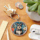 Cheerful Schnauzer William Morris Inspired Floral Rund Silverfärgad Nyckelring