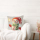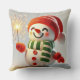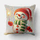 En festive snögubbe med en röd hatt och scarf under en snövinter.
