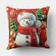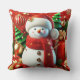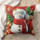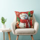 En festive snögubbe med en röd hatt och scarf under en snövinter.