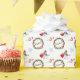 This festive pattern features a cheerful snowman with a red hat and green scarf, holding a red heart. Accompanied by green and red Christmas wreaths, blue snowflakes, and red berries, this colorful and whimsical design is perfect for holiday.