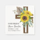 Skämmande, elegant solblommor, eukalyptus och pampasgräs som visas på en mörk kor skapar denna blommigt för dina baptismblor. Den stora storleka i kor skapar en uppdaterad syn. "Välsigna dig" ligger ovanför namn. Även baptismdatumet och placeringen visas på dockan. Denna kapkin är perfekt för alla sena sommar- eller höstbaptism.