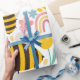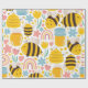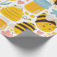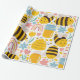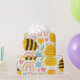 Ett vackert och färglöst mönster med bina från lycklig, levande blommor, burk från honung och vita regnbågar. Den ljusa gulten, rosan och blåtonerna skapar en levande och lekfull design som utstrålar glädjen i vår.