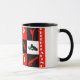 Den Cheerleading kvartermuggen i lag färgar rött, svartvitt. Muggen presenterar 15 populära cheerleading jippon, hopp och dråsaexpertis.