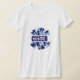 Den här kvinnans t-shirt visas med en snickarpräst. Färg Deep Blue and White Anpassa det här objektet eller köp som designat. Licensierad bild