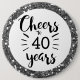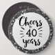 Ett silver glitter hejar på en knapp på 40 år som är underbar för en 40-årsdag, 40-årsdag osv. Observera att det inte finns någon egentlig glitter på den här produkten utan en designeffekt.