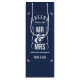 Om du behandlar dina gäster till en utsökt vino som en bröllop eller en rehearsal middag, så gör paket det i söt säckar för en verkligt speciell beröring! Den blå påsen "Cheers från Mr. och Mrs." i vit typografi med byten mellan vintage och stil. Anpassa till vin och namn. Obs! Om du vill byta säck i färg klickar du på "Anpassa" och väljer en ny bakgrund i färg för att matcha bröllop färger.