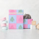 CHEERS JULGRANAR-2-ROSA-BLUE-GIFT WRAPPING PAPPER-A whimsical Julgran skapat i ojämn käbbel linjer fram och tillbaka med den ord-tjuren vid träd grund. Bakgrunden är en bakgrundsruta för överdragning av bakgrundsrutor mönster med rosa och blå fyrkanter. Träd är skapat i rosa och grönt färg. Utformningen finns i en rad mjuka pastelliserade färger. Välj vilken storlek av Zazzle-presenten som omsluter som helst och avsluta. Det finns en samordning av leveranser och gåvor från party.