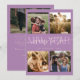 Modern New Year's photo template card featuring a typography text that says "cheers to the new year" with 4 pictures. You can add another picture and a message on the back of the card. Lilac.
