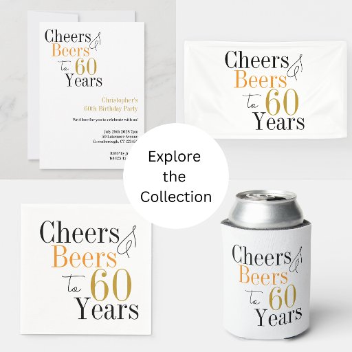 60th Birthday Party Cheers and Beers Minimal PartyDesignad av Only The Moon