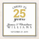 Fira 25 år av er bröllop-årsdag med denna Cheers till 25 år av papper underlägg i bröllop. Den här utformningen är svart och guld gräns med texten "CHEERS TO 25 years". Anpassa det här objektet med dina för- och efternamn och datum för händelsen. Gör en underbar party-souvenir eller partiförmån.
