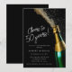 Perfekt 50-årsinbjudan till en man eller kvinna. En öppen champagne flaska med bubblor skapar en festlig design. Skål till 50 år är skrivet i ett modernt och trendig-skript. Information om födelsedagen följer nedan. Den vita texten står mot den svarta bakgrunden. Hela texten kan redigeras så att du kan verkligen en personlig för dina gäster.