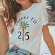 A bright Cheers to 25 tshirt for the woman turning thirty — think sunshine and tropical palm trees. This customizable birthday party gift coordinates with a matching invitation and other party supplies. Featuring a lush palm tree motif in the center bordered on each side with the birthday age that you can personalize with any age desired.