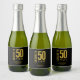 Personalized mini sparkling wine bottle labels feature the birthday year, honoree's name and party date in gold on a black background, or any color you choose. Ideal for any birthday year celebration, retirement party, anniversary celebration, party favor or for any occasion. MORE colors and MATCHING items in our collection.