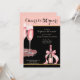 Make your 50th milestone birthday party unforgettable with this stylish and festive invitation design! With a sophisticated two-tone pink black layout, the upper side features a rich pink shade adorned with golden glitters, watercolor champagne glasses, and a bottle that sets the scene for a bubbly celebration. The scripted “Cheers to 50 years” adds a touch of glamour and excitement across the card. On the middle part, black color, room for all your personalized party details in a classy script and serif font pairing. The back design continues the elegant theme with a pink base and shimmering glitter details.