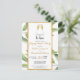 Den här inbjudan till förlovningsfesten Cheers to Kärlek har två champagneglas i en skål till kärlek. Det finns en söt guld ram med botaniska accenter av grönt som omger texten på baksidan och framsidan av denna moderna och chic partiinbjudan. Anpassa det här bröllop-tillbehöret till namn och datumet för din händelse.