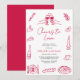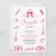 The “Cheers to Love” Hand Drawn Retro Bridal Shower Invitation features a charming Italian-inspired design with a clean and modern layout. The card is decorated with playful red line art illustrations placed around the border. These include clinking wine glasses, a wine bottle, pizza slices, bread, cheese, citrus, olives, a candle, a coffee cup, and a dinner plate setting. The simple hand-drawn style gives the invitation a warm and relaxed feel.