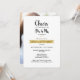 Elegant "cheers to the future mr and Mrs" förlovningsfest-kort med en design som innehåller ord "Cheers" och "Mr & Mrs" i ett svart, handskrivet typsnitt och ett faux guld-band under ord "Förlovningsfest". På baksidan har designen plats för ett stort foto. Anpassa designen genom att ersätta texten och fotot. Kontakta designern om du har några designanpassningsbegäranden.