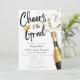 Skål för Studentfesten Grad Champagne Toast - Ett modernt och unikt meddelande från personlig studentfest inbjudan. Med en fin champagne flaska med konetti. Uttrycket "Cheers to the Grad" skrivs i penselskripttypografi. Redigera den här inbjudan till college eller universiteten studenten med din egen händelseinformation. På baksidan lägger du till student bild till Arch ram. Du kan även hämta perfekt för att skicka via text, e-post eller social.