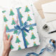 This wrapping paper features an original illustration: a cheery Christmas tree! Hand drawn illustration of a Christmas tree topped with a large gold star and bedecked with smaller stars and red ribbons.