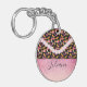 Monogrammed Namn. personlig namn, nyckelkedja med cheetah-djurtryck och Pearl, Faux Glitter Nyckelring