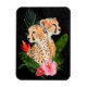 Cheetah Bouquet II av Annie Warren. Två fuskverk bildas av tropiskt löv och grönt mot svart bakgrund. | 164453Z