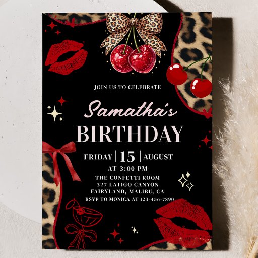 Cheetah Coquette Cherry On Top Birthday Invitation Inbjudningar