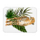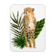 Cheetah Outlook I av Annie Warren. En cheetah i vattenfärgen stil tittar på med den tropiska gröntens löv i bakgrunden. | 164730Z
